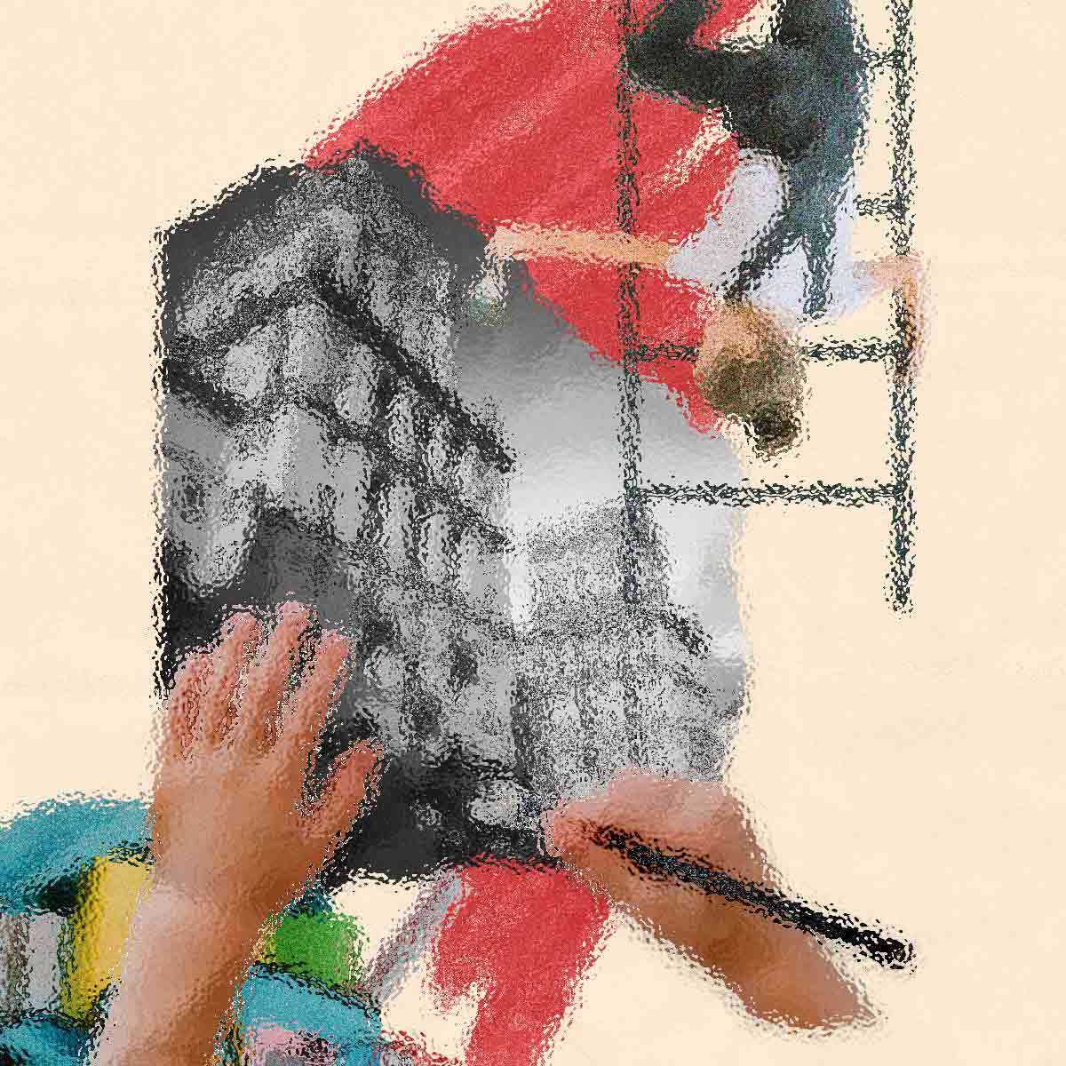 Abstract art, collage with female portrait and mountains, generative ai